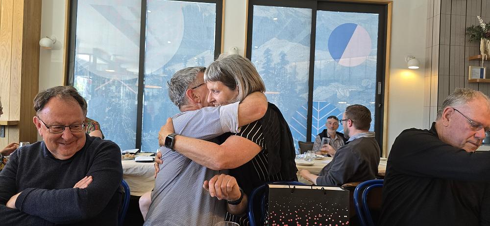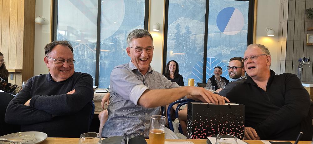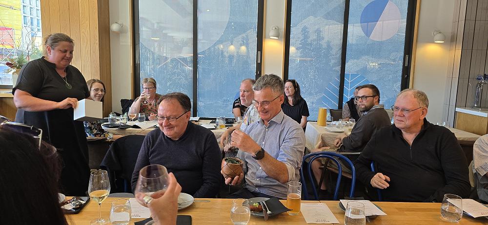 Over plates passed and stories shared, we honoured Ken Pullar’s contributions with a pounamu koha, marking decades of dedication. Liz Hannah sent Scottish treats from Aberdeen, with haggis always popular, even from 18,000 kilometres away.