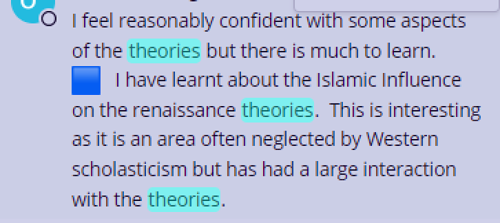 There was a clear structure to it. Students knew what they were working towards over the term, the focus from week to week and what they would be expected to do. However, I used informal checkpoints to get feedback from students about their understanding of key ideas in our theories module. I would then adapt my learning design accordingly in order to unpack ideas students were struggling with, build on concepts or consolidate concepts.